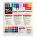 Create your own masterpiece on fabric with our Dual Tip Fabric Markers Signature 12pc. This set comes with 12 eye-catching and vibrant colours! With dual ends, you can create fine line details and flip to the 5mm tip to colour big surfaces. Whether you're decking out your new shoes or designing a catchy tote bag, these dual tip fabric markers are sure to turn heads.
