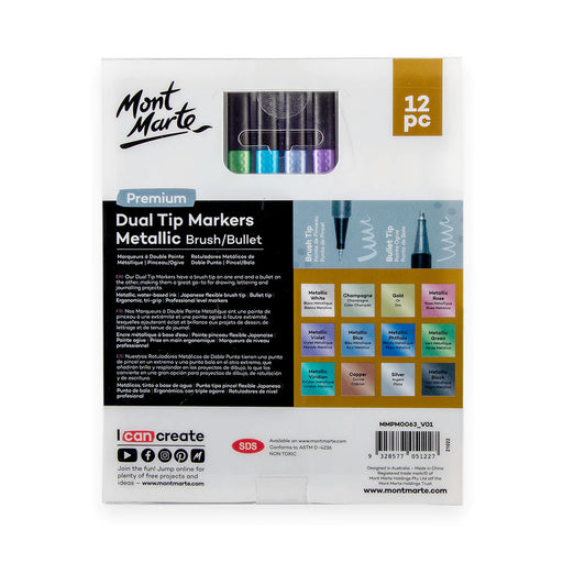 in stockOur Dual Tip Markers Metallic 12pc have a brush tip on one end and a bullet tip on the other, making them a great go-to for drawing, lettering and ...
