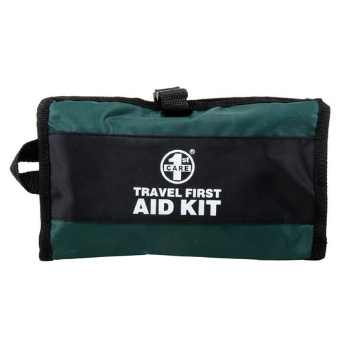 in stock57 Piece Kit Includes: Travel First Aid Bag 3 x Alcohol Cleaning Pads Triangular Sling Bandage 3 x Non Adherent Pads 2 x Gauze Dressing Pads Abdo...